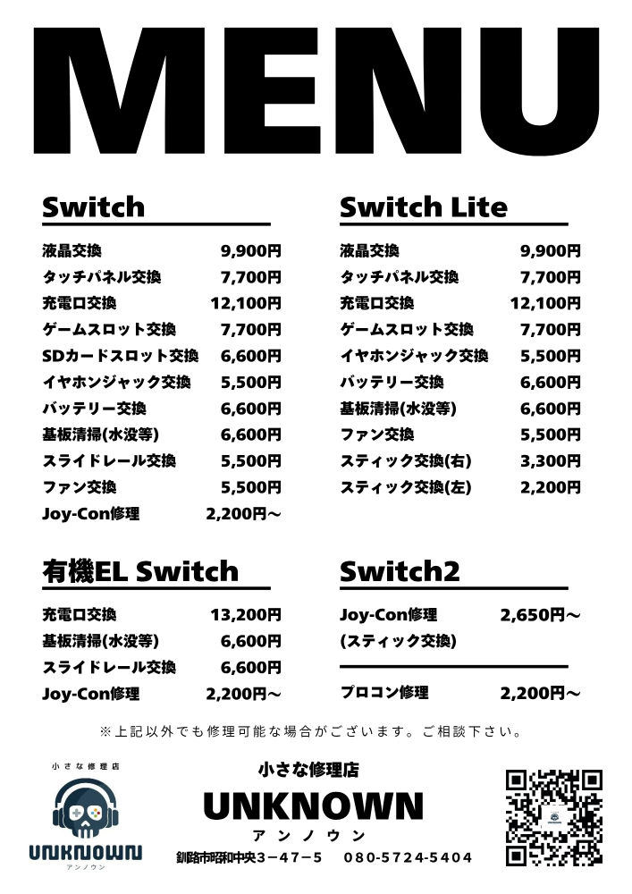 ※修理は基本土日祝のみ(お預かりは平日可)